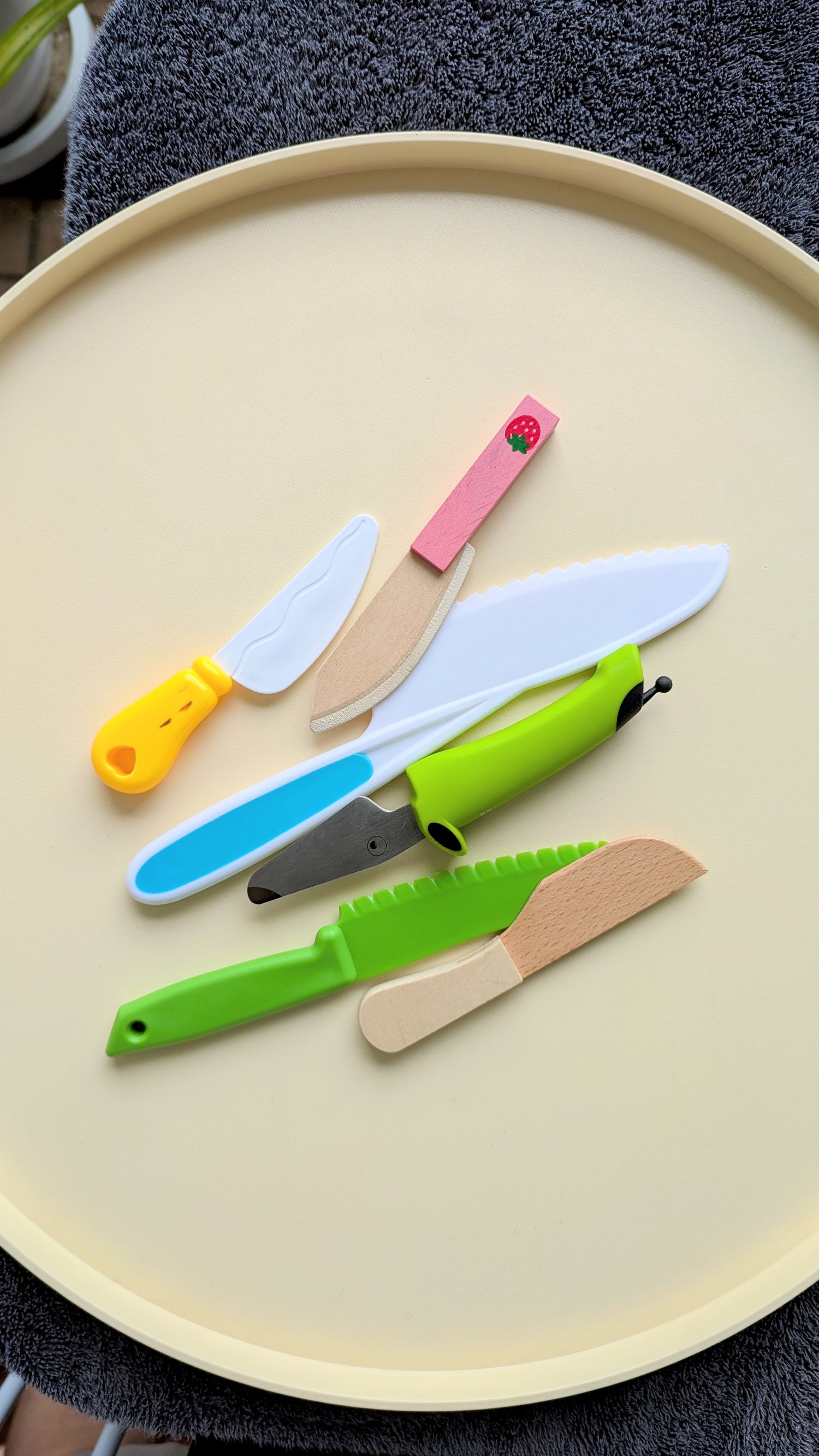 We believe that while it's important for knives to appeal to kids, they should also resemble real knives. This helps children recognize the care needed when using these knives.
